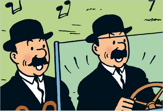 車にガソリンを入れて、ドライブを楽しもうとするデュポン&デュボン。